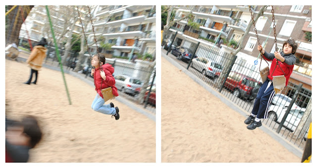 Nuestro ninja necesitaba salir al mundo exterior, así que durante el finde largo encontramos una plaza fantástica en capital y... fuimos dos días seguidos! Con razón estoy con "faringolitis" (creo que es la nueva manera cool que encontraron los médicos para decir "anginas")... Pero quién nos quita lo bailado, o mejor dicho "lo comido"? Gracias a nuestros amigos Caro, los Matis, Fernanda (y Nico a punto de llegar al mundo!) por una velada con comida caserísima (y no me olvido de toda la familia Di Pietro, que son el club de fans de Amadeo más grande fuera del conurbano, jaja!),y gracias a mi mamá por el asado al horno del sábado y a mi papá por grabarnos programas sobre Costa Rica! y gracias a Luisi por su compañía de plaza! Lástima que todo lo bueno, como los findes largos, llega a su fin, pero nada es tan malo si al final hay churros caseros!